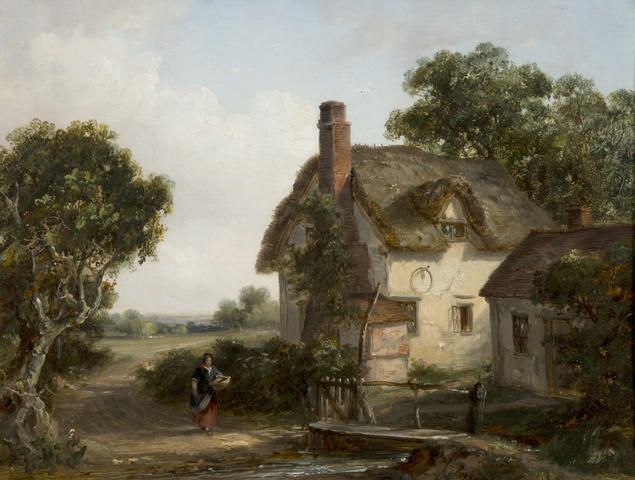 Figure beside a cottage