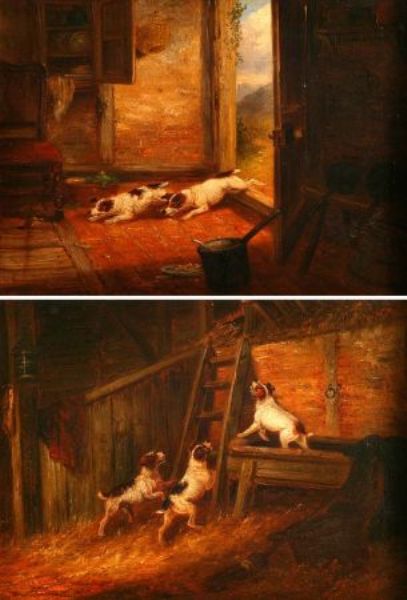 | Terriers Ratting in a Cottage Interior and Terriers Chasing a Cat in a Barn Interior | |