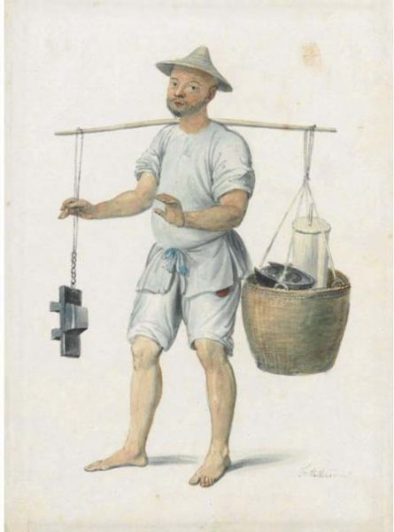 | A WOMAN CARRYING A YOKE WITH BUCKETS; A MAN CARRYING A SET OF SCALES | |