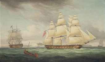 A flagship of the Blue Squadron and a merchantman in the Channel off Dover