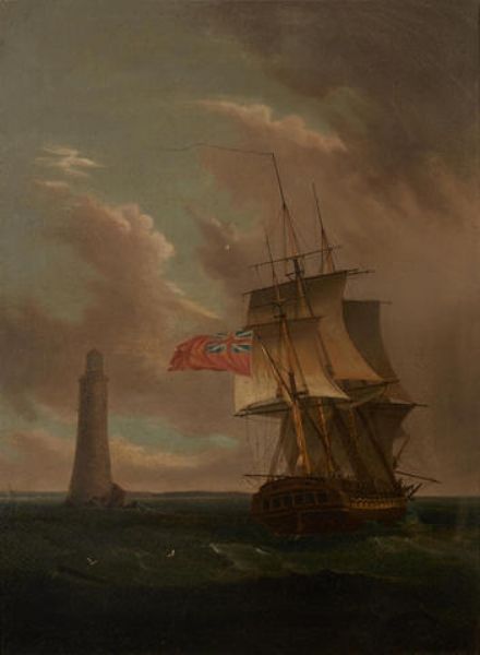 A two-decker rounding the lighthouse
