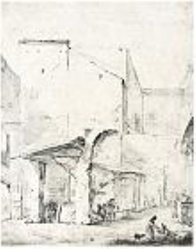 | Chalk point of the brush and grey wash over black chalk, within brown ink framing lines | |