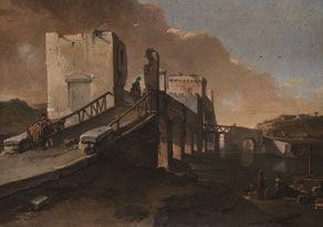 ITALIENISCHE LANDSCHAFT MIT GROSSER BOGENBRÜCKE