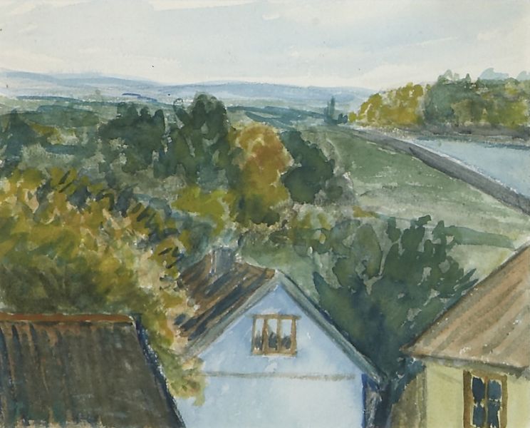 Landskap med hus