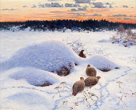 Winter landscape with partridges