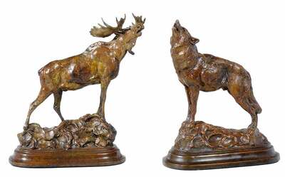 Two wildlife bronzes: Howling Wolf