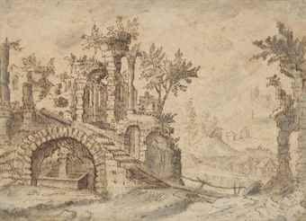| A ruined Roman villa in an Italianate landscape | |