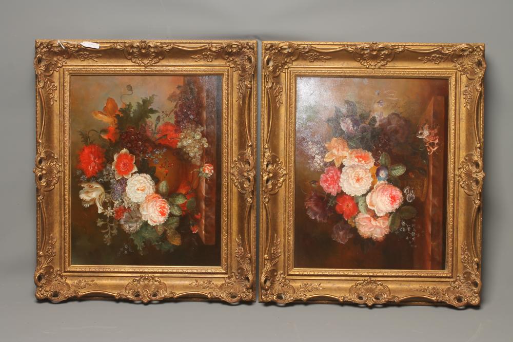 Still Life with Vase of Flowers on a Ledge, a pair