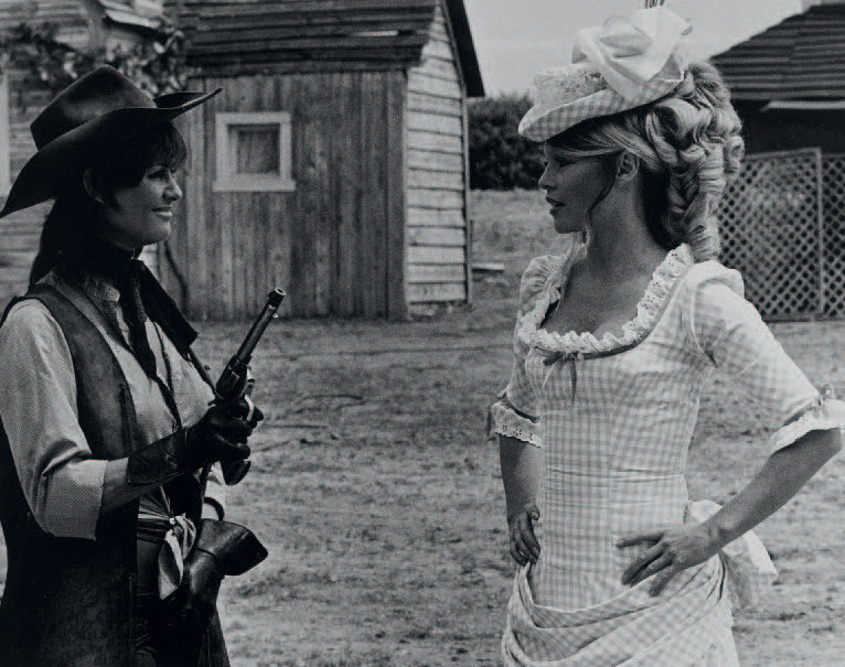 Brigitte Bardot et Claudia Cardinale - Sur le tournage du film "Les Petroleuses"