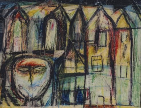 Komposisjon med hus og mann