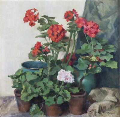 Blumentöpfe mit Geranien