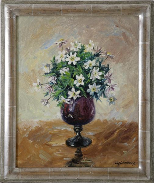 Stilleben med vitsippor i vas