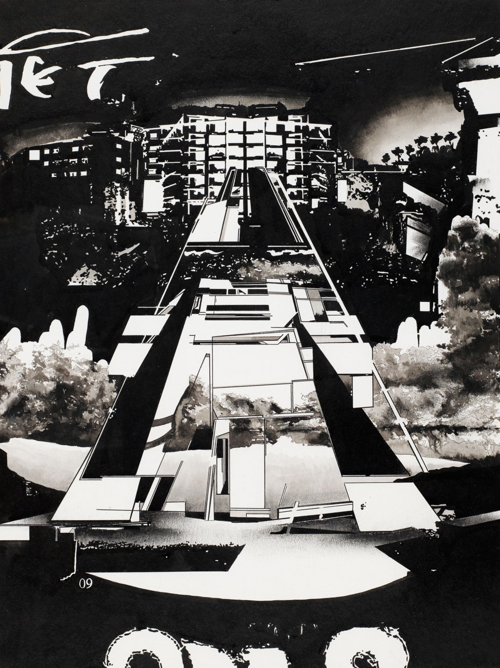 | Ink and charcoal on paper | |