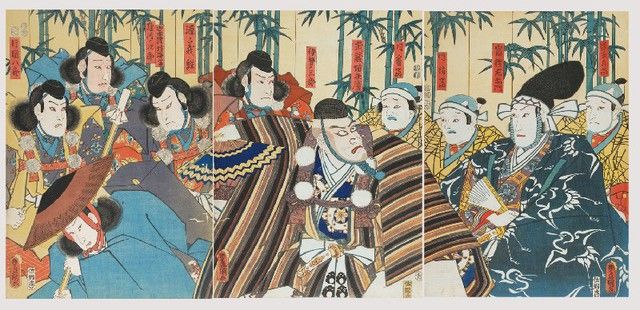 Scena z teatru kabuki-tryptyk