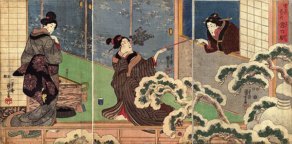 | Ladies and snow-covered pine trees - series Setsu Gekka No Uchi | |