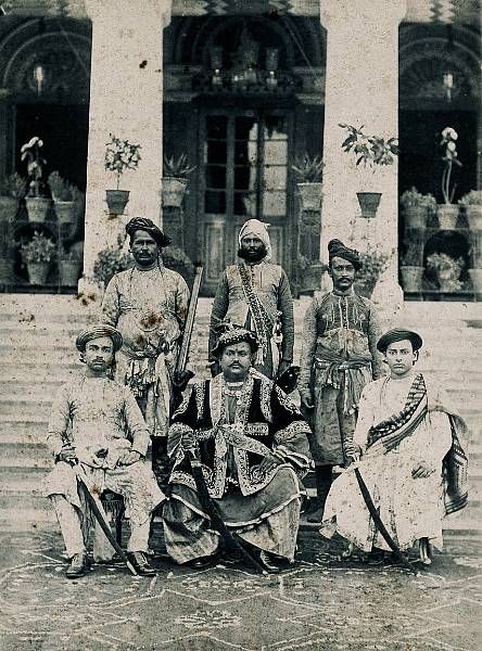 Portrait of Maharaja Prabhu Narayan Singh Bahadur with five attendants