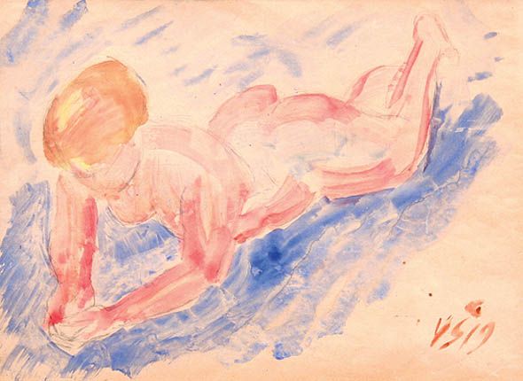 Pencil and watercolour on paper