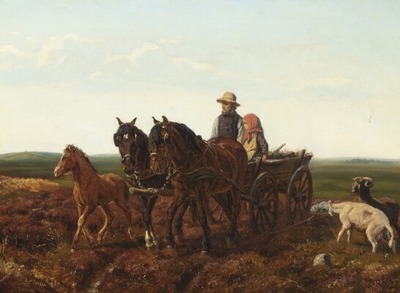 | Moor scenery with a farmer and his daughter on a horse-drawn carriage | |