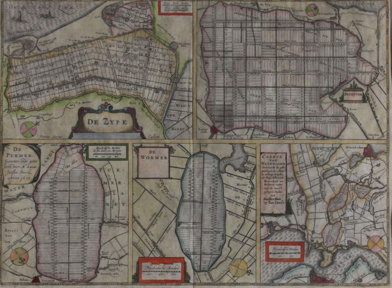 | De Zype, Beemster, De Purmer, De Wormer, Caerte van Waterland. Hand ingekleurde gravure door Lucas Jansen Sinck | |