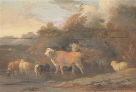 Sheep, goats and cattle in a landscape