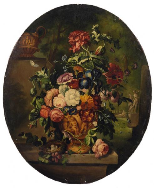 Still Life, Vase of Colourful Summer Flowers