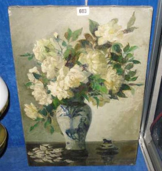 Still life of flowers in a delft vase
