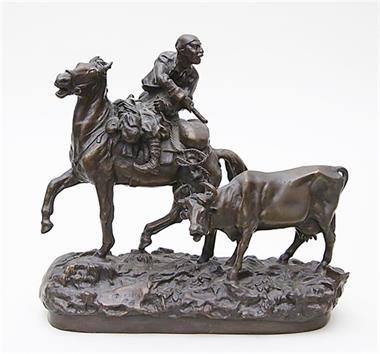 Zigeuner zu Pferd mit Rind