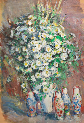 Still life with the Russian dolls and flowers