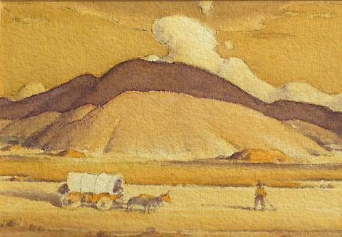 Covered Wagon with Mountains in the Distance