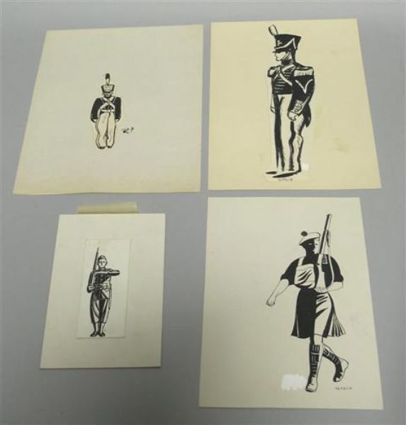 FOUR DRAWINGS OF MEN IN MILITARY UNIFORMS, c. 1944