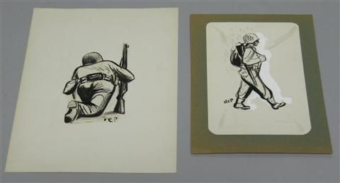 TWO INK DRAWING OF MEN IN COMBAT, C. 1942