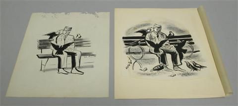 TWO INK OF SOLDIERS SITTING ON A BENCH, C. 1942