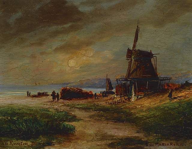 Mondlandschaft mit Windmühle und Personenstaffage, bez. by Maria Kerk