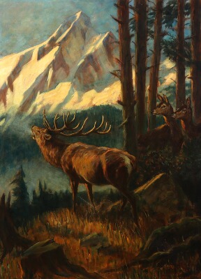 “Hirschbild”. Roaring stag