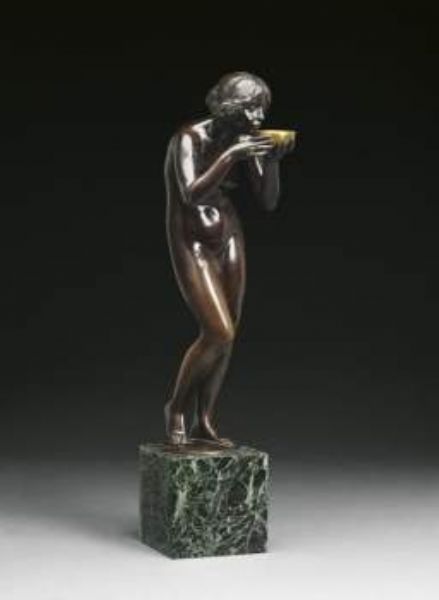 Trinkendes Mädchen, weiblicher Akt mit Schale