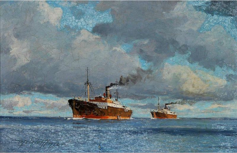 Seascape with two cargo ships