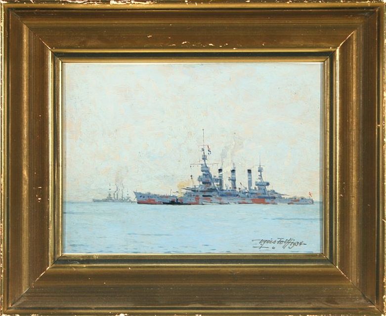 Warships at anchor.