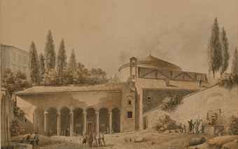 | L'église Saint Etienne de Rome, des personnages sur la place | |
