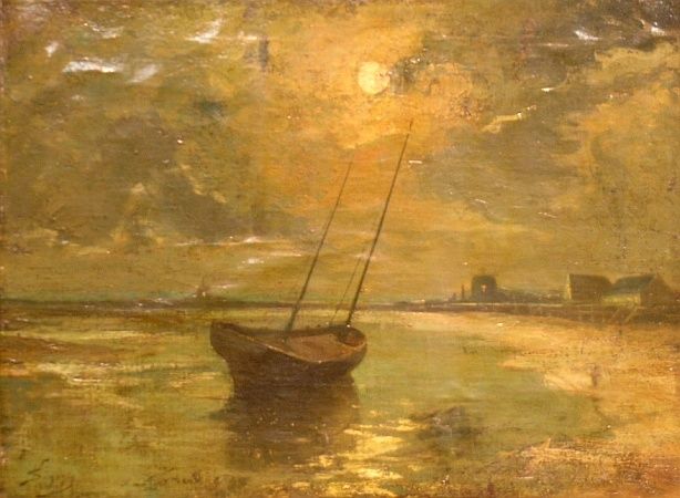 BOAT IN LOW TIDE IN THE MOONLIGHT