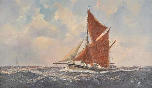 | Two-masted gaff-rigged sailing vessel in choppy seas | |