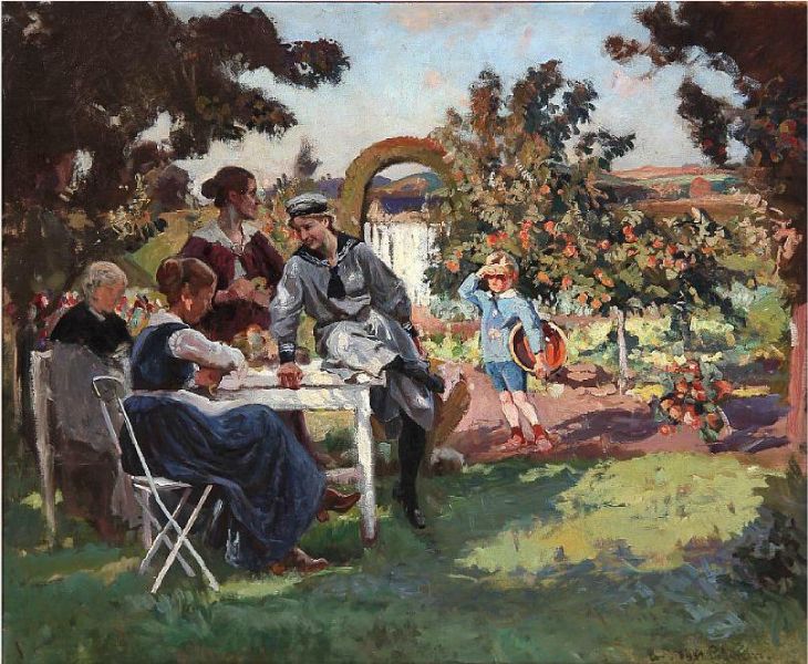 | Summer day in a garden with a family | |