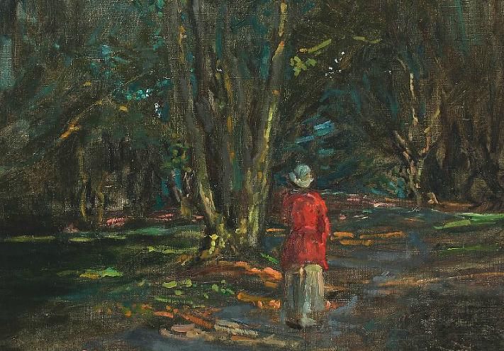 Forest scape with female wanderer