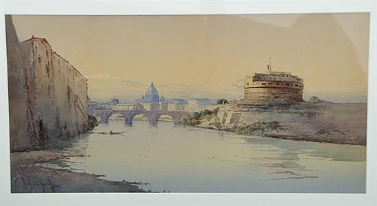 CASTEL SANT ANGELO AND ST PETERS FROM THE TIBER