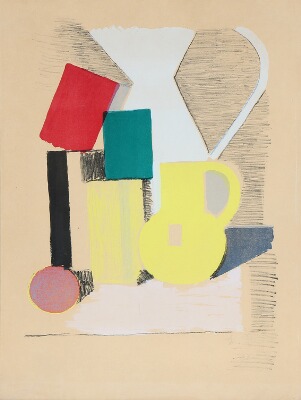 | Still life with yellow and white pitcher | |