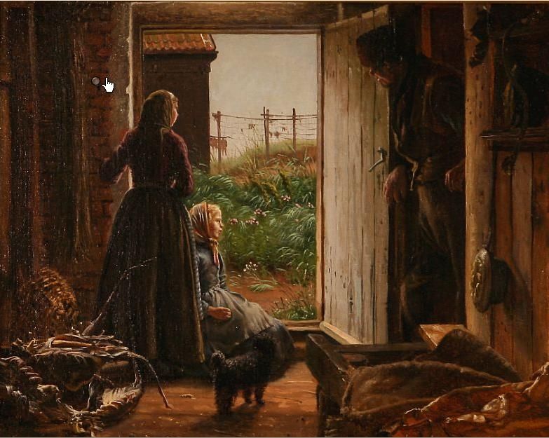 | Fishermen interior with a young girl waiting in the doorway. | |