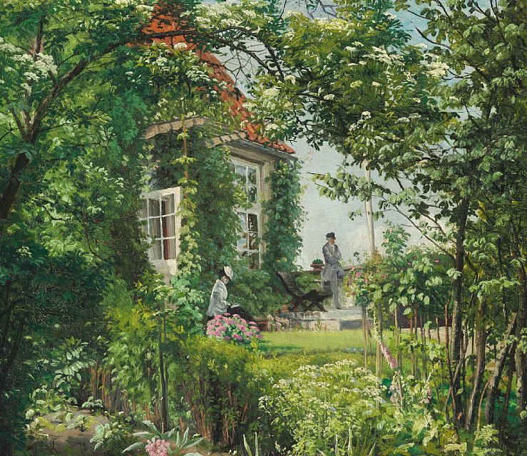 | Rudolph and Signe Puggaard in their garden in Hellebæk. | |