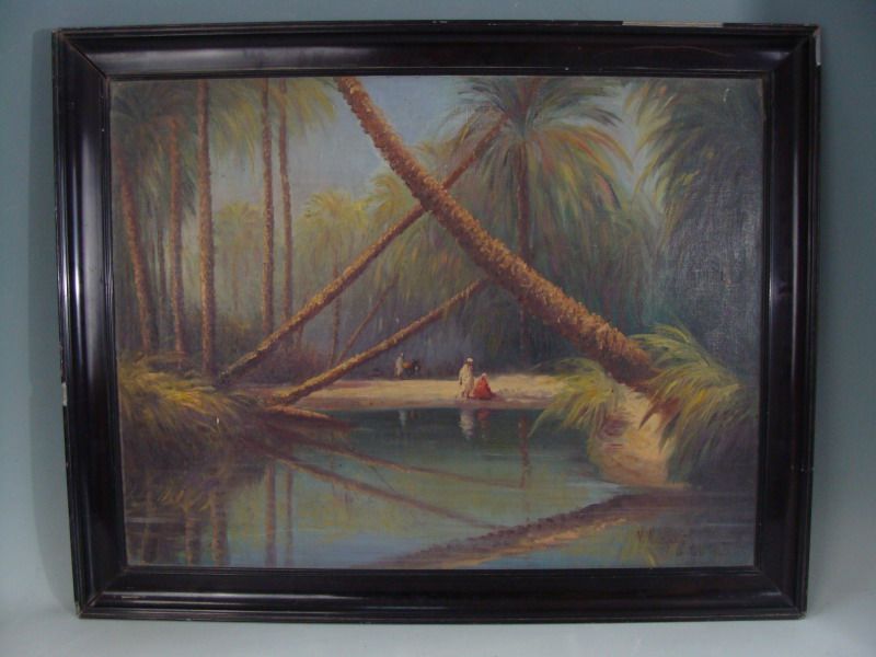 Au bord d'un oued dans une palmeraie.