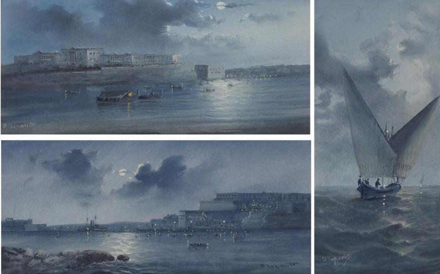 | VALLETA HARBOUR BY MOONLIGHT (a pair), FISHING BOATS BY MOONLIGHT | |