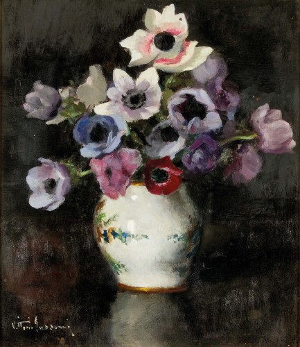 Stillleben mit Anemonen in Keramikvase.