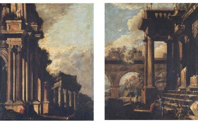 | a) Capriccio architettonico con astanti b) Capriccio architettonico con rovine, acquedotto ed astanti | |